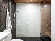 - Kuvaus: Lasiseinä saunasta kylpyhuoneeseen. sähkökiuas