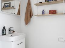 - Pesutilojen kuvaus: Erittäin tilava pesutila, jossa on peilikaappi, allaskaappi, pyykkikaappi, wc-istuin, bideesuihku sekä suihku suihkuseinällä. Lattiassa laatta ja seinät kaakelia. Lattialämmitys. Erillisten WC:n lukumäärä: 2. Erillisen WC:n kuvaus: Kodin toinen wc jossa peilikaappi, allaskaappi.
