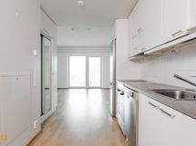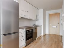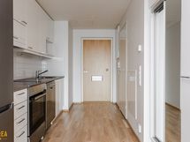 Keittiön varusteet: Jääkaappi, astianpesukone, liesi ja liesituuletin. Työtason materiaali: Laminaatti.