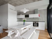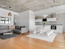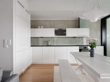 - Keittiön varusteet: 2 jääkaappipakastinta (toinen uusittu 2025), erillisuuni, liesi (induktio, uusitttu 2025), astianpesukone ja mikroaaltouuni. Työtason materiaali: Kivi.