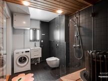 - Pesutilojen kuvaus: 2 kylpyhuonetta WC-istuimineen! Kaikki kiinteästi asennetut kalusteet kuuluvat kauppaan. Varustus mm. suihku, suihkuseinät, kaapistot, peili, allaskaappi, pesukoneliitäntä. Erillisten WC:n lukumäärä: 2. Erillisen WC:n kuvaus: 2 WC:tä kylpyhuoneiden yhteydessä.