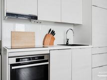 - Keittiön varusteet: Jääkaappipakastin, liesi, erillisuuni (Yhdistelmäuuni: grilli, kiertoilma ja mikro samassa.) ja astianpesukone. Liesi: Induktioliesi. Työtason materiaali: Laminaatti.
