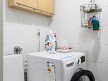 Asunnossa vaalea laminaattilattia ja seinät vaalein maalipinnoin sekä osaksi tapetoitu. Eteisessä isot peilikaapit. Laatoitetussa kylpyhuoneessa on liitännät omalle pyykinpesukoneelle. Keittiön varusteluun kuuluu oma astianpesukone sekä jääkaappipakastin, liesituuletin. Asunnossa on hyvin säilytystilaa. Eteisestä sekä makuuhuoneesta löytyy kaapistot, myös keittiössä hyvin säilytystilaa.