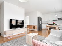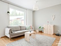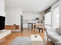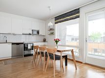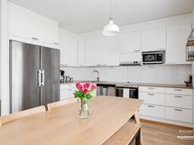 - Keittiön varusteet: Erillinen pakastin, jääkaappi, uuni, liesi, liesituuletin ja astianpesukone. Liesi: Keraaminen liesi. Työtason materiaali: Laminaatti. Astianpesukone vaihdettu 2022, silikonsaumat kylpyhuoneeseen syksy 2025.