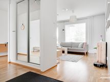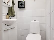 - Pesutilojen varusteet: WC-istuin, suihku, suihkuseinä, pesukoneliitäntä, lattialämmitys, peilikaappi, pesuallas, allaskaappi ja bidee-suihku. Pesutilojen kuvaus: Kylpyhuoneen silikonisaumat uusittu syksyllä 2025. Erillisten WC:n lukumäärä: 1. Erillisen WC:n varusteet: WC-istuin, peilikaappi, pesuallas, allaskaappi, bidee-suihku ja lattialämmitys.