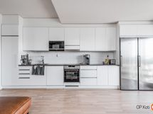 - Jääkaappi, pakastekaappi, erillisuuni, liesitaso, induktioliesi, liesituuletin, mikroaaltouuni, astianpesukone, kaapistot, kiinteät valaisimet. Kvartsitasot