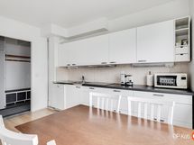 - Jääkaappipakastin, erillisuuni, induktioliesi, liesituuletin aktiivihiili, astianpesukone, kiinteät valaisimet.
