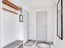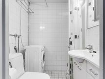 - Kylpyhuone, suihku, peilit, peilikaappi, allaskaappi, pesukoneliitäntä, kiinteät valaisimet.