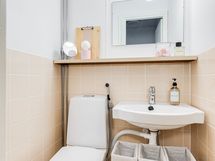 - Pesutilojen varusteet: Suihkukaappi, pesukoneliitäntä, pesuallas ja peilikaappi. Pesutilojen kuvaus: Remontoitu n. 2009. Erillisten WC:n lukumäärä: 1. Erillisen WC:n varusteet: WC-istuin, pesuallas, lattialämmitys ja bidee-suihku. Erillisen WC:n kuvaus: Remontoitu n. 2009.