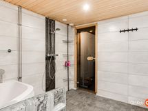 - Sauna, puukiuas (2019), kylpyhuone, erillinen wc, suihku, poreallas, peilit, pesukoneliitäntä, lattialämmitys (sähköllä), kiinteät valaisimet.