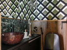- Pesutilojen kuvaus: Tämä kylpyhuone on todellinen helmi, jossa retrohenkinen kauneus kohtaa nykyaikaisen tyylin! Seinillä loistaa upea 70-luvun vihreä pystylaatoitus, joka luo tilaan persoonallisen ja ajattoman tunnelman. kylpyamme, kullan sävyinen sadesuihku ja tyylikäs seinä-wc tuovat ripauksen modernia luksusta. Erillisten WC:n lukumäärä: 2. Erillisen WC:n kuvaus: Erillinen wc hurmaa rouhealla tyylillään. Seinät on viimeistelty puolipaneelilla ja tapetilla, lattiassa laatta. Tyylikäs Woodien pesuallas ja pyöreä valopeili.