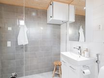 - Kylpyhuone, sauna, erillinen wc, suihku, suihkuseinä, peilikaappi, pesukoneliitäntä, lattialämmitys, kylpyhuonekaapisto, kiinteät valaisimet, sähkökiuas, lasiseinä. Lisäksi taloyhtiöllä on tunnelmallinen pihasauna pienellä oleskeluterassilla, mitä saa vuokrata halutessaan.