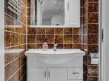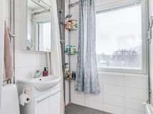 - Pesutilojen kuvaus: Suihku, peilikaappi, allas, allaskaapisto, wc-istuin, pesukoneliitäntä. Remontoitu 2018. Erillisten WC:n lukumäärä: 1. Erillisen WC:n kuvaus: Peilikaappi, allas, allaskaapisto, wc-istuin, pidee-suihku.