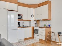 - Jääkaappi/pakastin, liesi, liesituuletin, astianpesukone, uuni. Työtasot: massiivipuu.