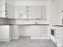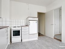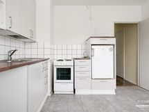- Keittiön varusteet: Jääkaappi ja liesi. Liesi: Sähköhella. Työtason materiaali: Laminaatti.