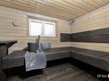 - Sauna, puukiuas, kylpyhuone, erillinen wc x2, suihku x2, suihkuseinä (alakerran wc:ssä), peilit, kaapit, allaskaappi, pesukoneliitäntä, kiinteät valaisimet.