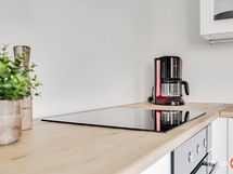 - Jääkaappipakastin 2022, erillisuuni, induktioliesi, liesituuletin, astianpesukone, kaapistot, pöytätasojen materiaali Puu.