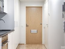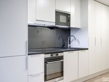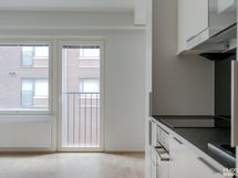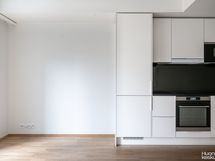 Keittiön varusteet: Jääkaappipakastin, erillisuuni, liesituuletin, mikroaaltouuni ja astianpesukone. Liesi: Induktioliesi. Työtason materiaali: Laminaatti.