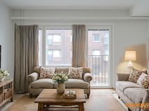 Tämä citykoti on korkeatasoisesti varusteltu. Lämminhenkinen parkettilattia sekä integroidut kodinkoneet luovat näyttävyyttä ja tyylikkyyttä avaraan oleskelutilaan. Tilavaan kylpyhuoneeseen mahtuu hyvin pesukone ja sen saa kätevästi piiloon lasiovien taakse. Yhtiö sijaitsee omalla tontilla ja vastike on todella pieni.