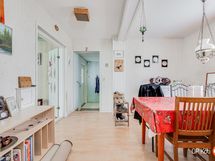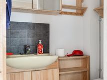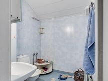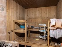 Sauna, puukiuas, kylpyhuone, erillinen wc, suihku, peilikaappi, kaapit, allaskaappi, pesukoneliitäntä, kiinteät valaisimet. Vesivahinko tapahtunut 2025, purettu, ei korjatttu.