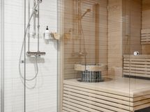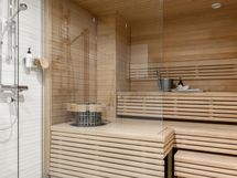 Huoneiston lisäksi on mahdollisuus ostaa myös erikseen leveä autohallipaikka hintaan 25 000 €, johon pääsee suoraan hissillä.