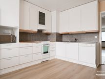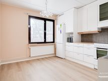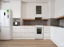 - Varustus: Jääkaappi/pakastin, keraaminen liesi, liesituuletin, mikroaaltouuni, astianpesukone, laminaattitasot. Keittiön kaapistoja ja lattia uusittu 2023.