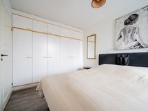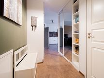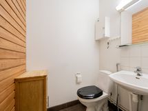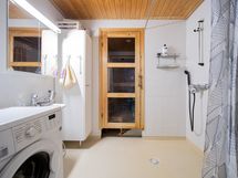 - Pesutilojen kuvaus: Alkuperäiset materiaalit, lattiassa muovimatto, seinillä valkeaa laattaa. Tila ja liitäntä pyykinpesukoneelle. Alkuperäisessä pohjapiirroksessa merkitty varaus wc-istuimen asentamiselle. Erillisten WC:n lukumäärä: 1. Erillisen WC:n kuvaus: Remontoitu kesällä 2025. Lattia vesieristetty ja laatoitettu.