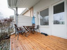 - Takapihalla on katettu terassi etelään, yhtiön sisäpihan suuntaan. Suojaisat pensasaidat. Terassilaudoitus on uusittu 2025.