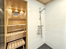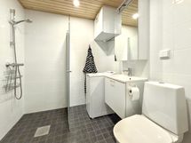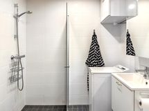 Varusteet: lattialämmitys, peilikaappi, pesukoneliitäntä, suihku, suihkuseinä, wc