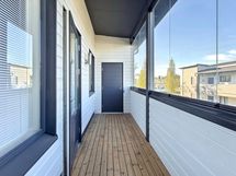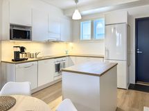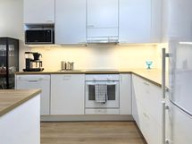 Tervetuloa kotiin, jossa arki toimii ja yksityiskohdat ilahduttavat. Tämä vuonna 2021 valmistuneen luhtitalon yläkerran kaksio ei ole mikään tavanomainen luhtitalo – jo rakennusvaiheessa tehtyjen muutostöiden ansiosta kokonaisuus on harkittu ja persoonallinen. Sisään astuessa avautuu avara ja valoisa keittiö, jossa keskipisteenä komeilee saareke. Vaaleasävyinen Puustelli-keittiö tarjoaa runsaasti kaappi- ja laskutilaa, joten kokkaaminen sujuu mutkattomasti. Rakennusvaiheessa keittiötä on paranneltu mm. tilavilla vetolaatikoilla. Olohuone yhdistyy keittiöön sulavasti ja jatkuu lasitetulle parvekkeelle. Parvekkeen päässä sijaitsee myös asunnon oma ulkovarasto – täydellinen paikka vaikkapa harrastusvälineille.