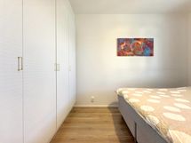 Makuuhuoneessa on seinän leveydeltä säilytystilaa, ja kylpyhuoneessa on reilusti tilaa. Eteisessä myös runsaasti kaappitilaa. Autokatospaikka sähköauton latausvalmiudella myydään omana osakkeenaan hintaan 6 000 €. Autokatoksen päädyssä sijaitsee lisäksi toinen varasto, joka tuo lisää varastotilaa.