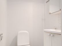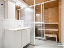 - Pesutilojen varusteet: Suihku, suihkuseinä, pesuallas, peilikaappi, allaskaappi, lattialämmitys ja pesukoneliitäntä. Erillisten WC:n lukumäärä: 1. Erillisen WC:n varusteet: Peilikaappi, pesuallas, allaskaappi ja bidee-suihku.