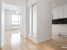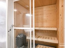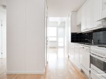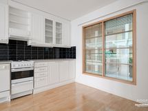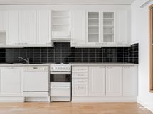 - Keittiön varusteet: Jääkaappipakastin, uuni, liesi, liesituuletin ja astianpesukone. Liesi: Sähköhella. Työtason materiaali: Laminaatti.