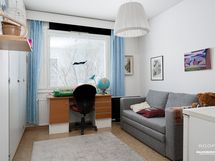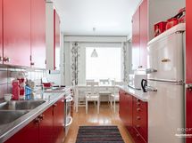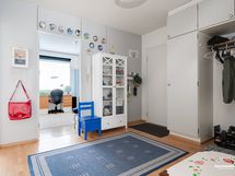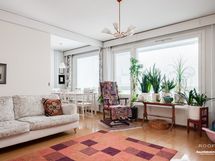 Koti sijaitsee toisessa kerroksessa, ja läpitalon ratkaisun ansiosta valoa tulvii sisään koko päivän. Erillinen keittiö tarjoaa hyvän tilan ruoanlaittoon ja olohuoneesta on käynti lasitetulle parvekkeelle. Asunnon pinnat ovat siististi pidetyt ja kylpyhuone on remontoitu 2000-luvun alussa.