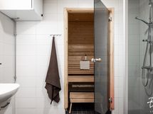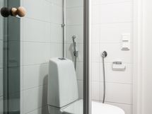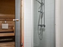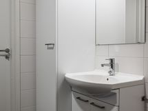 - Varustus: suihkuseinä, pesukoneliitäntä, lattialämmitys, wc-istuin, suihku, peilikaappi.