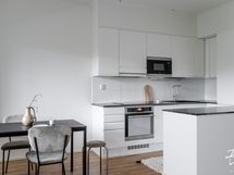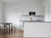 - Liesi: keraaminen, erillisuuni. Työtasot: laminaatti. Kylmäsäilytys: jääkaappi/pakastin. Varustus: liesituuletin, mikroaaltouuni, astianpesukone. Kiinteä keittiösaareke