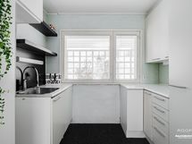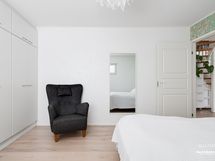 Ei tarkistusmitattu. Pinta-alat saattavat tämän ikäisissä kohteissa (rakennuslupa haettu ennen 01.01.1992) poiketa olennaisestikin asuinrakennusten nykyisten mittaustapojen ja standardien (SFS 5139) mukaan laskettavasta asuintilojen pinta-alasta. Pinta-ala voi siis olla edellä mainittua pienempi tai suurempi.