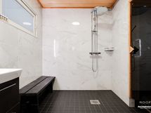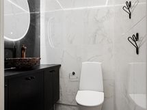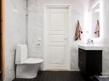 - Pesutilojen varusteet: Suihku, lattialämmitys, pesuallas, wc-istuin, peili ja allaskaappi. Erillisten WC:n lukumäärä: 2. Erillisen WC:n varusteet: Pesuallas, bidee-suihku, peili, allaskaappi, wc-istuin ja lattialämmitys.