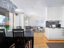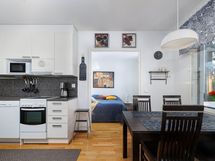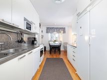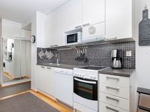 - Keraaminen liesi, Jääkaappi, Pakastin, Kaapisto, Liesituuletin, Astianpesukone, Erillisuuni