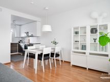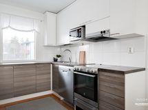 - Keittiön varusteet: Jääkaappi, erillinen pakastin, uuni, liesi, liesituuletin, mikroaaltouuni ja astianpesukone. Liesi: Keraaminen liesi. Työtason materiaali: Laminaatti.