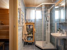 - Pesutilojen varusteet: WC-istuin, suihku, suihkukaappi ja lattialämmitys. Erillisten WC:n lukumäärä: 2. Erillisen WC:n varusteet: WC-istuin, bidee-suihku, allaskaappi ja peilikaappi.