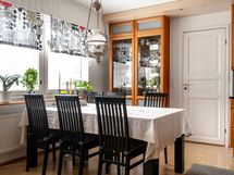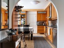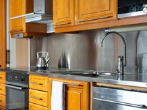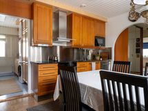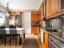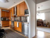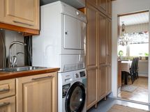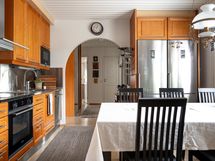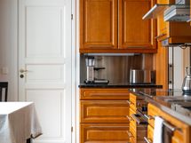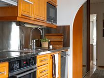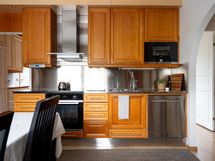 - Keittiön varusteet: Jääkaappi, pakastekaappi, liesi, erillisuuni, astianpesukone, liesituuletin ja mikroaaltouuni. Työtason materiaali: Kivi. Tilava keittiö, jossa paljon säilytystilaa.