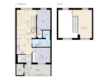 Tässä kodissa hurmaa upea viiden metrin huonekorkeus ja tilava 14,5m2 parvi, joka on mahdollisuus muuttaa myös lisämakuuhuoneeksi. Normaali huonekorkeudella varustetun parven voi suunnitella moneen erilaiseen käyttöön elämäntilanteesta riippuen.