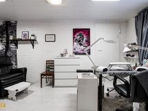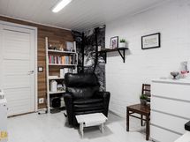 Alakerrassa on monikäyttöinen takkahuone, joka soveltuu mainiosti myös makuuhuoneeksi tai oleskelutilaksi. Kylpytilat ja sauna puukiukaalla tarjoavat arjen luksusta. Vuonna 2013 työtilaksi muutettu varastohuone sähköpatterilla soveltuu erinomaisesti etätyöhön tai harrastetilaksi.