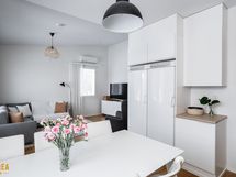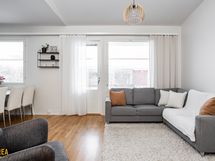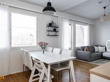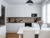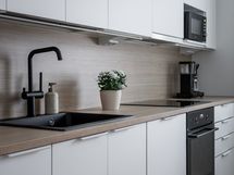 - Keittiön varusteet: Jääkaappi, erillinen pakastin, astianpesukone (AEG, integroitu astianpesukone), erillisuuni (AEG, SteamBake-höyryuuni, pyrolyysi), liesi (AEG, SenseBoil-induktioliesi) ja liesituuletin (Liesituuletin, Lapek). Työtason materiaali: Laminaatti. Keittiö remontoitu vuonna 2025. Topi-keittiön rungot, kaapin ovet Puustelli. Uuni, liesi ja apk vaihdettu. Led valot Limente, allas Blanco ja hana Lapetek.
