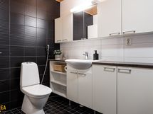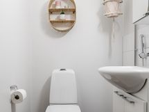 - Pesutilojen varusteet: WC-istuin, allaskaappi, pesuallas ja peilikaappi. Pesutilojen kuvaus: Tilava kylpyhuone jonka yhteydessä myös liitännät pyykinpesukoneelle. Kaapistoja säilytykselle. Erillisen WC:n varusteet: WC-istuin, allaskaappi, pesuallas ja peilikaappi. Erillisen WC:n kuvaus: Erillinen wc.