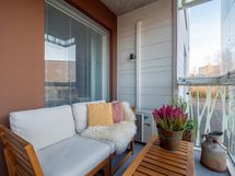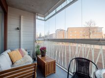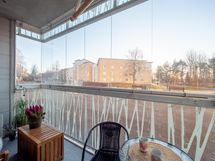 - ulkopuolinen, lasitettu. Parvekkeen suunta: etelä