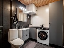 - Kylpyhuone: suihku, suihkuseinä, allaslaatikosto, peilikaappi valolla, wc-istuin, kodinhoidollinen tila, iv-kone. Sauna: saunassa on lasitus , sähkösauna. Erillinen wc: wc-istuin, allaslaatikosto, valopeili