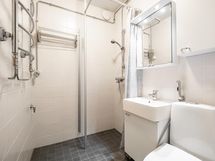- Kylpyhuone uusittu 2011. Kylpyhuone, suihku, suihkuseinäke, kylpyhuonekaapisto, kiinteät valaisimet, peilikaappi, pyyhekuivain