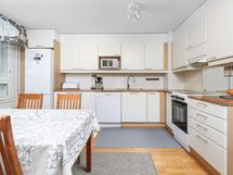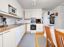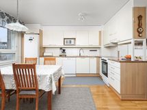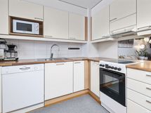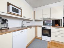 - Keraaminen liesi, Jääkaappipakastin, Kaapisto, Liesituuletin, Astianpesukone, Pesukoneliitäntä